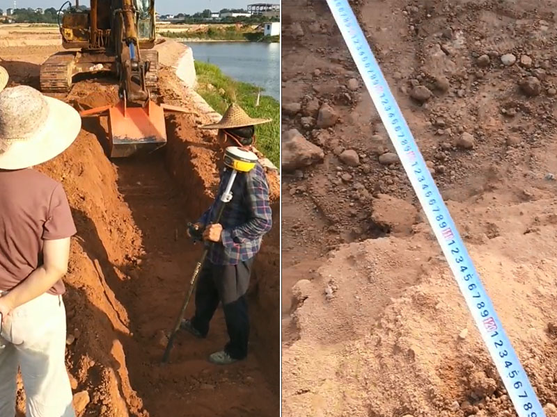 溝模開挖過大,原本連著混凝土總厚度是80cm,結果因為土質比較松軟挖了1.2米!這樣機器下去以后勢必要浪費比較多的混凝土,如果要節約混凝土,只能在水渠機后模上面添加擋板來減少混凝土的浪費。