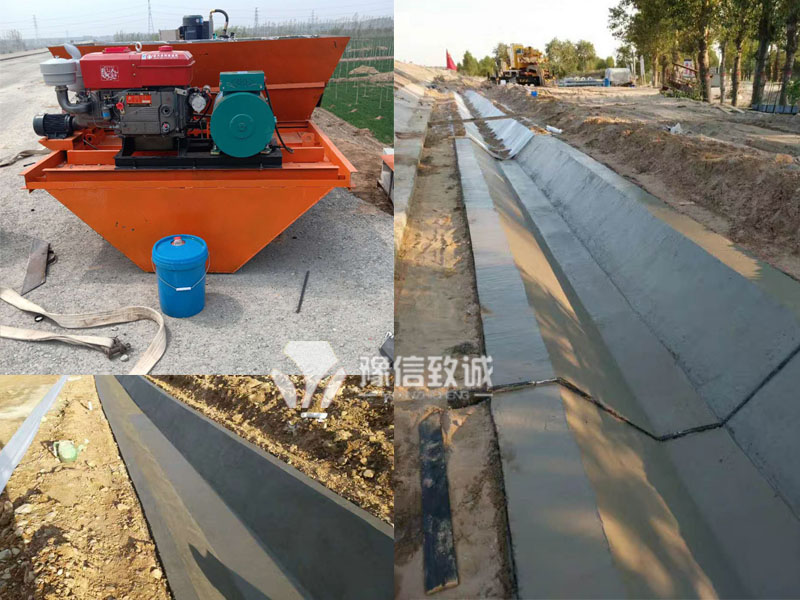 客戶修建公路邊溝排水渠,上口1.6米,下口0.6米,高度0.6米,厚度0.15米。從外觀我們看不到先前我說的這臺設備構造和普通設備有什么區別,是因為這臺設備的動力部分是提升過的,具體包括柴油發電機和液壓系統。為什么要這樣做呢?是因為新疆客戶地區的海拔較高,空氣相比內陸地區比較稀薄。而邊溝成型機所需要的電能是由自帶的發電機組提供的。為了確保柴油機充足的供電量,我們加大發電機組的柴油馬力。