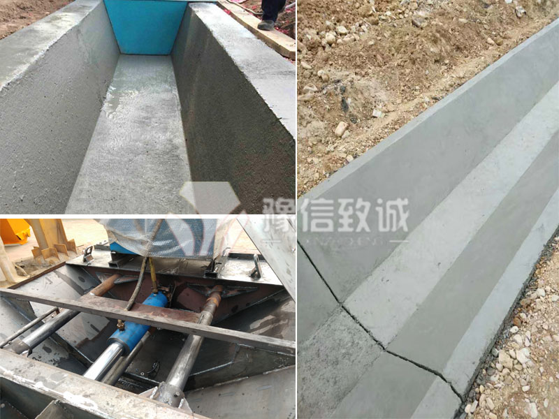全自動渠道成型機成型原理:混凝土進入料斗后,經過料斗內的絞龍旋轉和震動電機的輔助送料,使得混凝土進入機器前模。液壓泵站運轉操控機器前模內的液壓油缸推動擋板,把混凝土推到機器后模,機器的后模壓縮混凝土成型。液壓油缸反復推動,后方已經密實成型機的混凝土給機器一個向前的反作用,機器的行走輪在槽鋼輥道的輔助下直線前進。